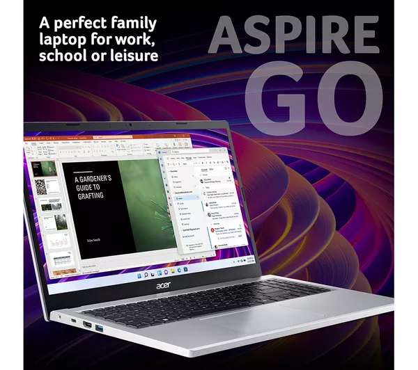 Browsing the web, working on a Word doc or just checking your emails? The Acer Aspire Go is powered by an octa-core Intel® Core™ i3 processor, so it’s ready for your everyday computing. It supports WiFi 6 for a super-fast and reliable wireless connection. And you don’t even need to worry about finding a socket. With up to 8.5 hours of battery life, you have loads of time to get everything done.