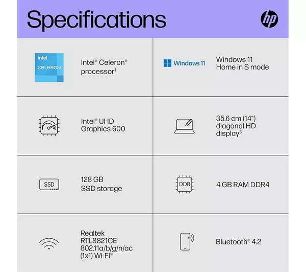 HP 14s-dq5503sa 14″ Laptop – Intel® Core™ i3, 128 GB SSD, Silver(Refurbished)