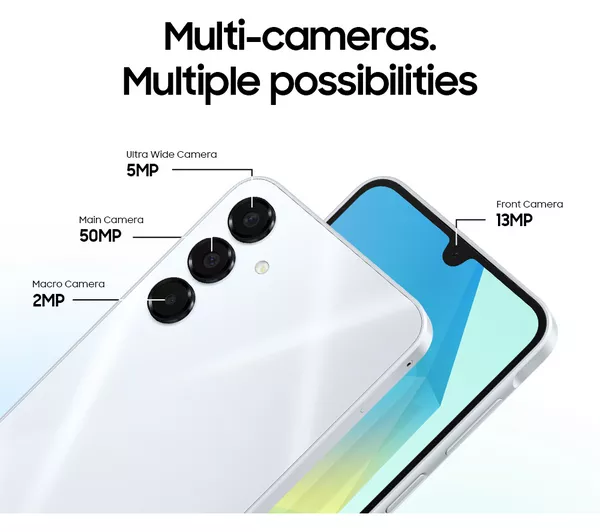 Good to know - The Exynos 1480 Processor will easily power through any app or game - Splashes or rain showers don't need to worry you – the A55 has an IP67 water-resistant rating - With 8 GB of RAM you can multitask in several apps at once without slowdowns - Sunset doesn't mean the fun has to stop - Nightography lets you take clear pics and videos, even in the dark - 5G connectivity lets you stream films and shows on-the-go – even when you're on the bus to work - The 32 MP front camera is perfect for selfies with your friends, and Zoom calls with your family - Fingerprint scanning and facial recognition keep your personal files safe, secure and for your eyes only - 128 GB of internal storage gives you plenty of space for all your important apps, photos and videos