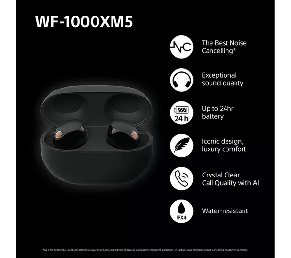 SONY WF-1000XM5 Wireless Bluetooth Noise-Cancelling Earbuds – Black
